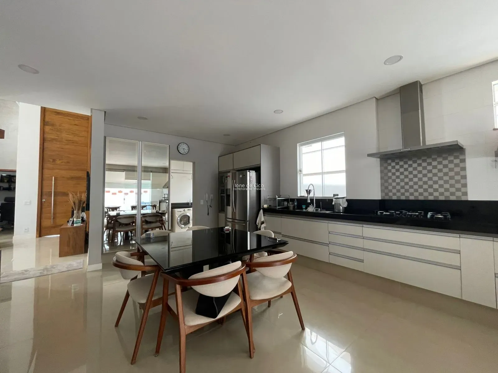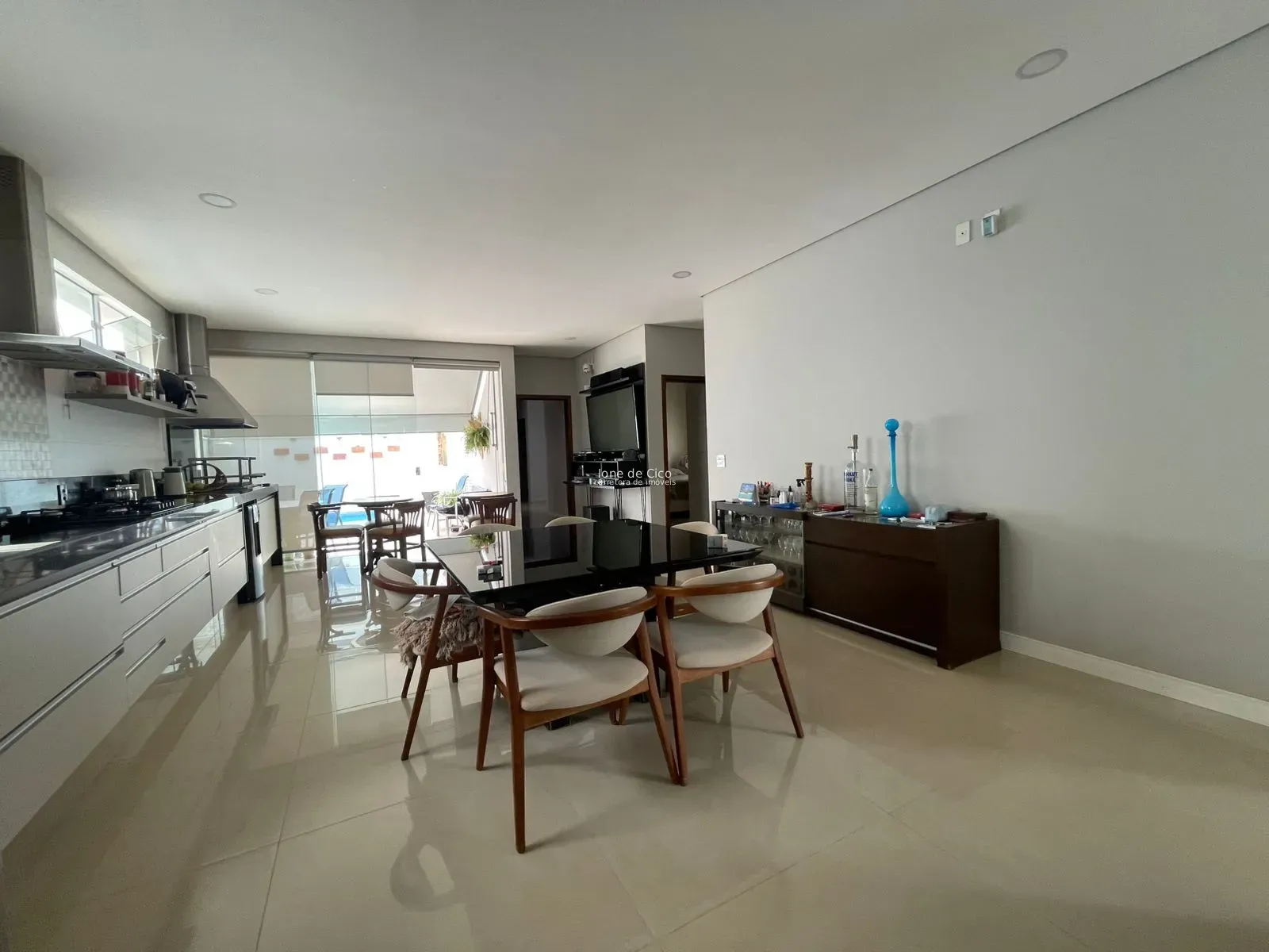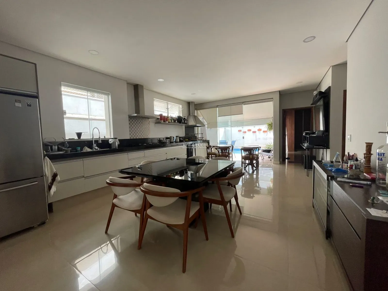 O imóvel conta com sala ampla com pé-direito alto, proporcionando excelente iluminação natural, além de escritório e lavabo. A cozinha gourmet totalmente integrada, com churrasqueira, é clara, arejada e perfeita para receber amigos e familiares, contando ainda com despensa.